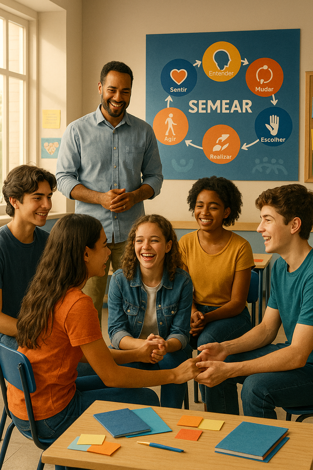 O S.E.M.E.A.R. – Estratégias Inteligentes é um programa educacional completo voltado para o desenvolvimento socioemocional de estudantes do Ensino Fundamental II. Oferecido em formato presencial, o programa é composto por conteúdos práticos, dinâmicos e vivenciais que ajudam jovens a enfrentarem os desafios da escola, da vida familiar e das demandas do mundo contemporâneo com mais equilíbrio, consciência e foco.